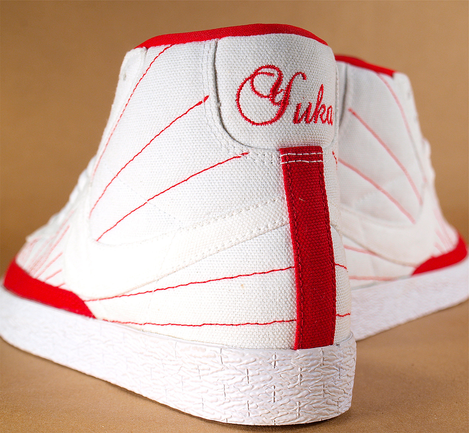These are a special present I made for a family member of mine, her name is Yuka. She's from Japan so I wanted to incorporate that into the design. I thought about going with the traditional Japanese flag and thought it would be great to do a quilting to go along as if they were the sun rays. The only problem I had was how to come up with the sun, so I came up with the idea to add a toe panel representing the sun. I made these with canvas on all panels for a more traditional look.